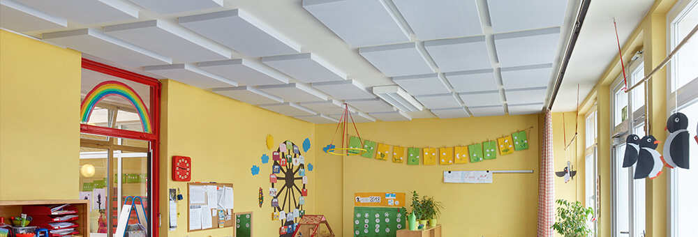 Täältä löydät äänenvaimennuksen, joka sopii erityisesti kouluihin ja päiväkoteihin, sekä asiakkaidemme kuvia, joista voit saada inspiraatioita. aixFOAM-levyt parantavat luokkahuoneen ja leikkitilojen huoneakustiikkaa ja siten keskittymistä ja oppimista.